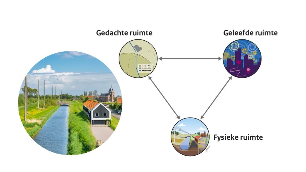 Bij elke ruimtelijke ingreep heb je eigenlijk te maken met drie verschillende soorten ruimte tegelijk. Allereerst de ruimte op papier, zoals opgetekend in de formele documenten van de planvorming (gedachte ruimte). Bijvoorbeeld het kadaster, het exploitatieplan of het bestemmingsplan. Daarnaast de fysieke eigenschappen van een concreet gebied, het stratenpatroon, het watersysteem, of het ecosysteem  (fysieke ruimte). Tot slot de leefwereld van concrete en diverse gebruikers (de geleefde ruimte). Een bejaarde stelt immers heel andere eisen aan de ruimte en gebruikt deze anders dan een sportieve student of een werkende ouder van een groot gezin.