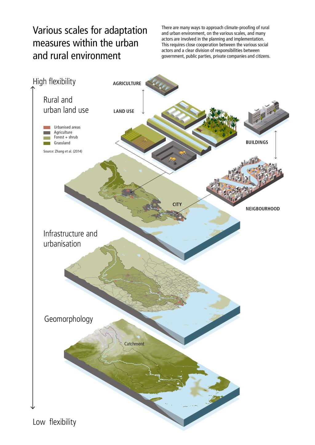 Promising governance approaches to improve river management are emerging; although, currently, there are only a few truly integrated river basin management systems. Some notable successes are being achieved — for example, on improving water quality and managing flood risks — but these are often the result of approaches on a sectoral level and, therefore, do not lead to a high-quality river system, in the long run. The required approaches should be more ambitious, involve a systems approach and acknowledge the geomorphological structures and functioning of the water system as a basis for spatial development (Figure 2), build coherence across sectors and involve a larger array of stakeholders.